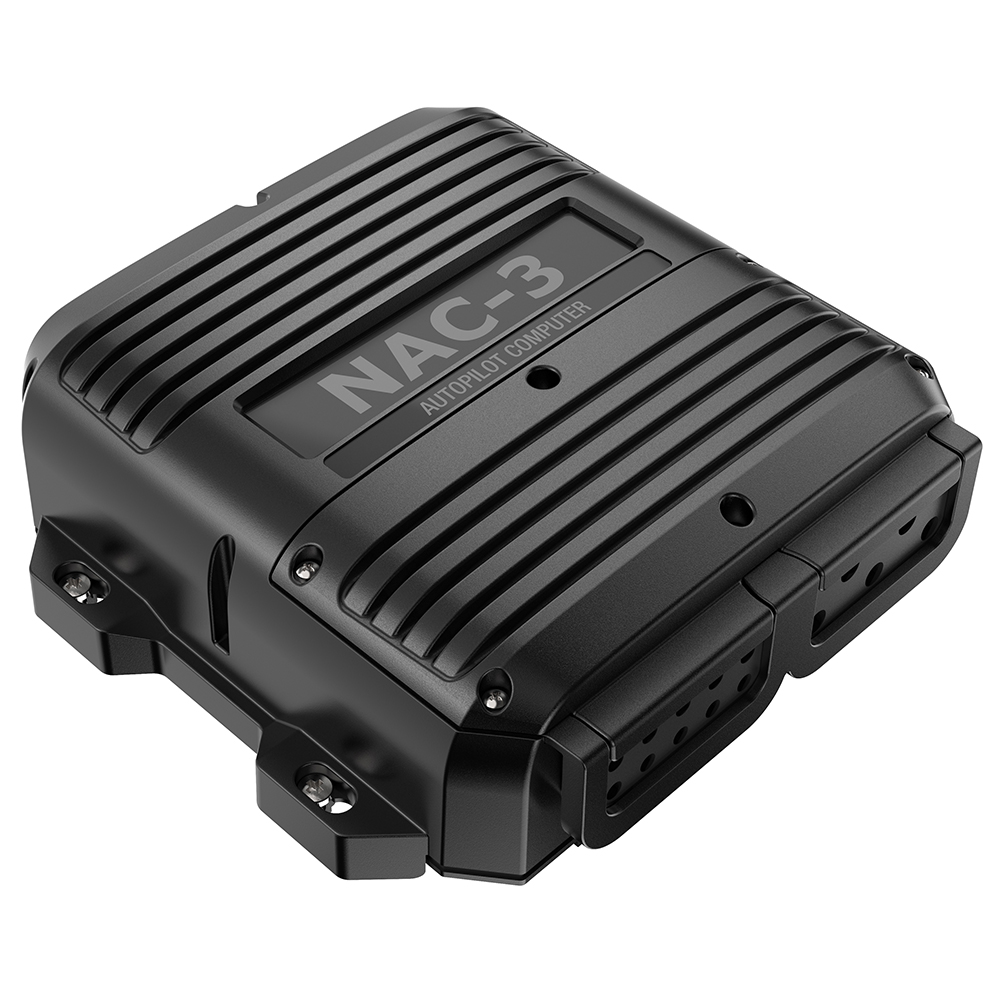 The NAC-3 Autopilot Computer is the brains behind your Simrad autopilot system. It contains the electronics needed to operate a hydraulic steering pump or mechanical drive unit, while also interfacing with other components including heading sensors and rudder feedback units. The NAC-3 was designed for boats 10M (33′) or greater in length and is rated to operate high-current pumps, mechanical drive units, and solenoid valves (30 Amps continuous/50 Amps peak).